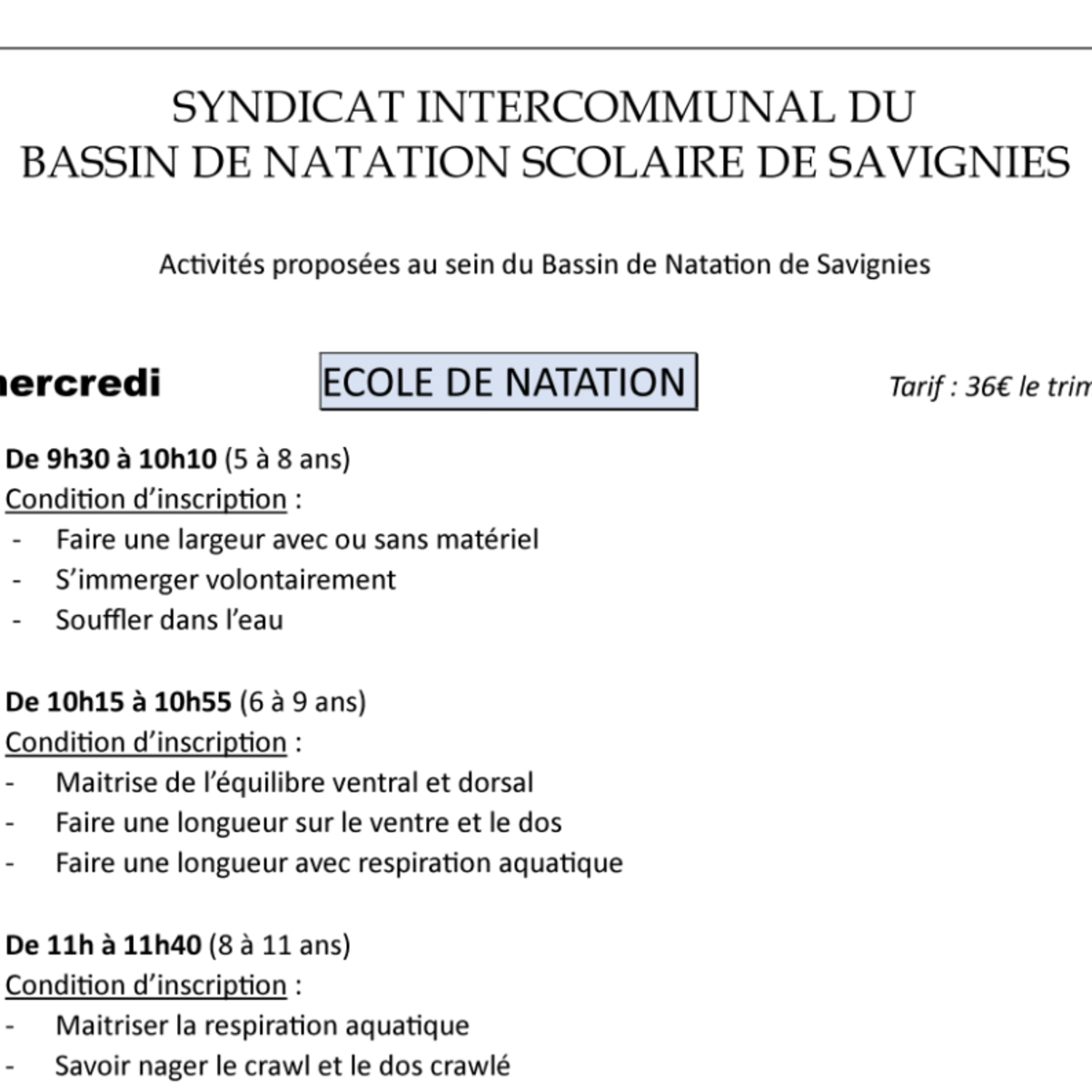 Ecole de natation - Aguagym - perfectionnement adultes et Pré-Ado